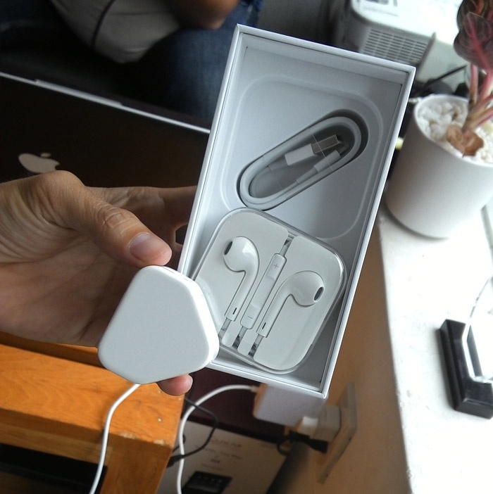 | Phụ kiện đi kèm với máy. Bấm vào đây để xem hình ảnh khui hộp chiếc iPhone 5S giá 52 triệu đồng tại Sài Gòn. |