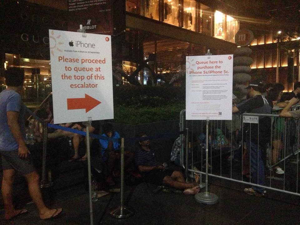 | Hình ảnh xếp hàng vạ vật mua iPhone 5S tại Singapore. Ảnh: Nguyễn Học. |