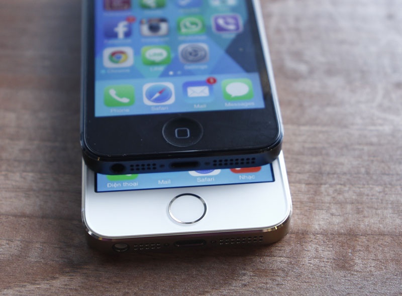 Hai model nói trên không có nhiều điểm khác biệt về thiết kế, ngoại trừ phím Home phẳng có viền vàng rất đẹp trên chiếc 5S.