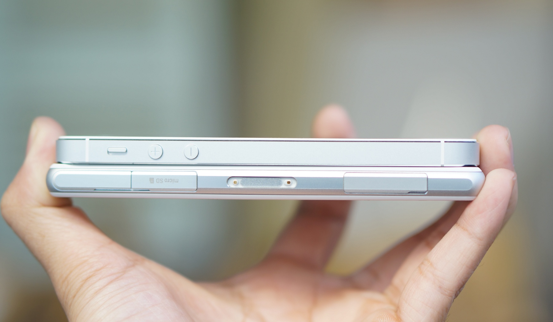 | Z1 Compact dày hơn 2mm so với iPhone 5S. |