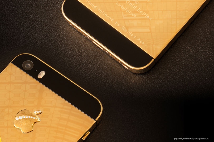 | iPhone 5S Glossy Gold là phiên bản giới hạn số lượng. Chỉ có 99 chiếc được hãng chế tác và phân phối trên toàn cầu với giá 58 triệu đồng cho bản 16 GB và 60 triệu đồng cho bản 32 GB. |
