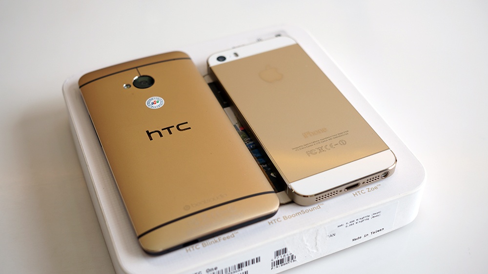 iPhone 5S màu vàng đọ dáng với HTC One Gold tại Việt Nam