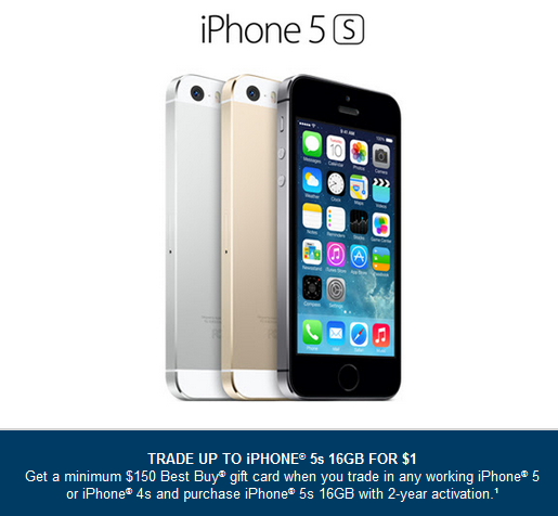Theo đó, khách hàng phải tích lũy tối thiểu 150 USD gift card khi mua iPhone 4S hoặc iPhone 5 tại hệ thống này. Sau đó, họ có thể dùng gift card này để mua iPhone 5S bản 16GB (giá hiện tại kèm hợp đồng mạng là 149 USD). Trên thực tế, Best Buy sẽ tính 1 USD cho mỗi chiếc iPhone 5S được giao dịch thành công.