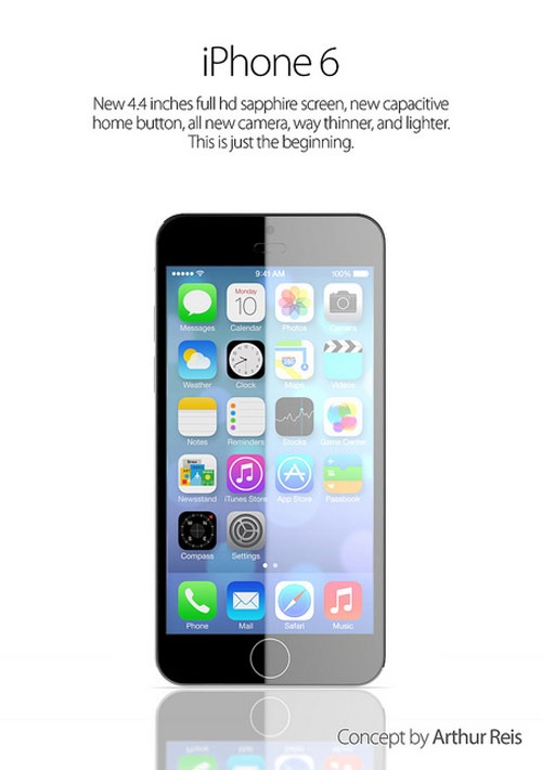 Mới đây, nhà thiết kế Arthur Reis đã nãy ra ý tưởng về một chiếc iPhone 6 với thiết kế tương tự như iPad Air nhưng được bổ sung màn hình được bảo vệ bằng kính sapphire, camera iSight Pro và đặc biệt là kích thước màn hình đã được nâng lên mức 4.4 inch.