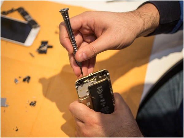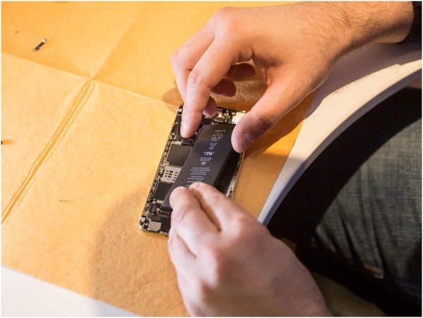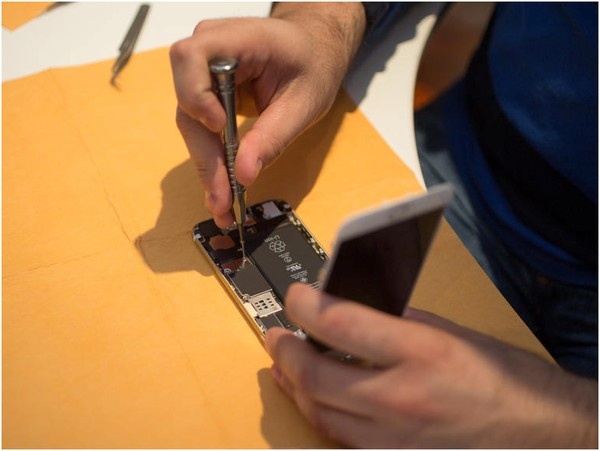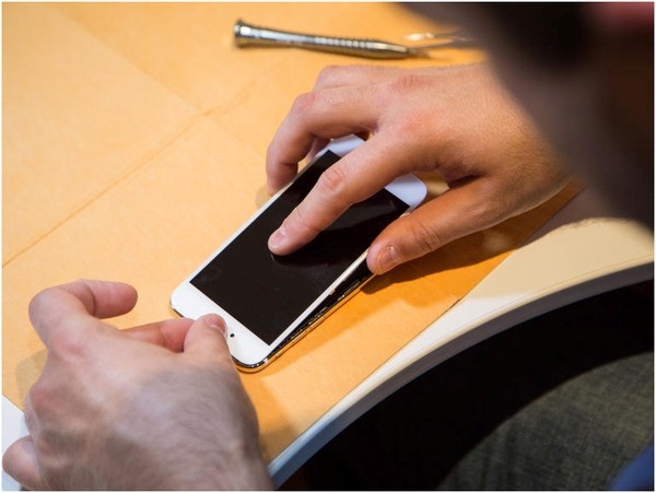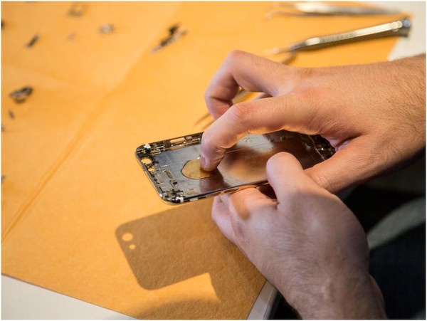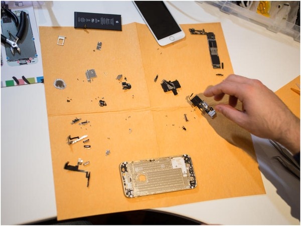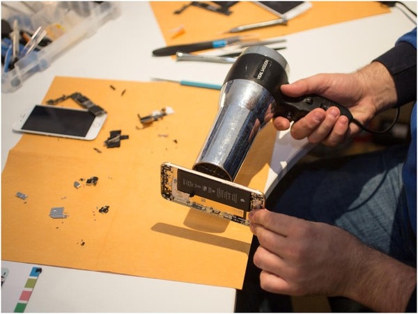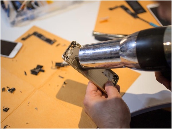 Nhiều chi tiết bên trong chiếc iPhone được gắn bằng keo, do đó, họ phải dùng máy sấy để lấy chúng ra.