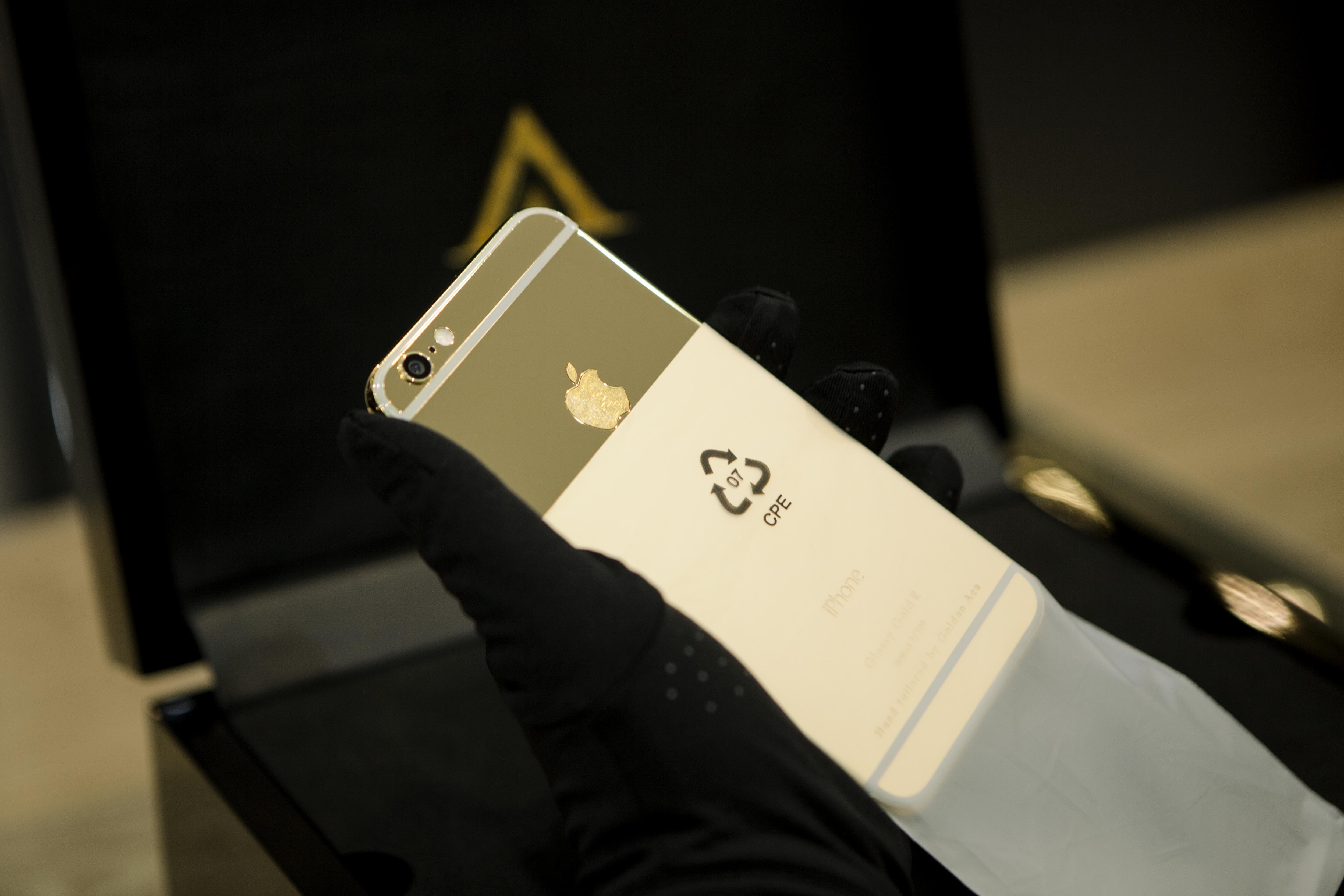 Đây là iPhone 6 chế tác mạ vàng được sản xuất giới hạn 199 chiếc. Glossy Gold II (vàng bóng) và Matte Gold (vàng mờ), là hai phiên bản chế tác độc đáo này. |