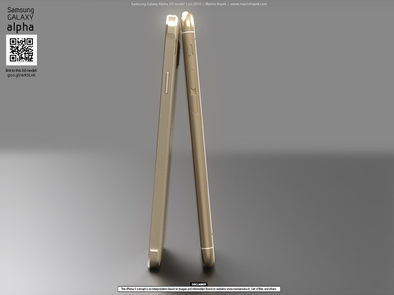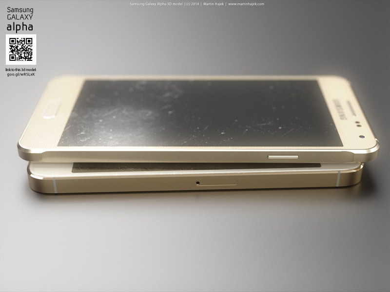 | Bên cạnh iPhone 6, Martin Hajek cũng dựng thêm các bức ảnh 3D so sánh giữa Galaxy Alpha và iPhone 5S. Cả hai có điểm chung là đều được tích hợp cảm biến nhận dạng vân tay ở nút Home. |