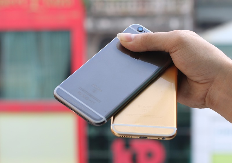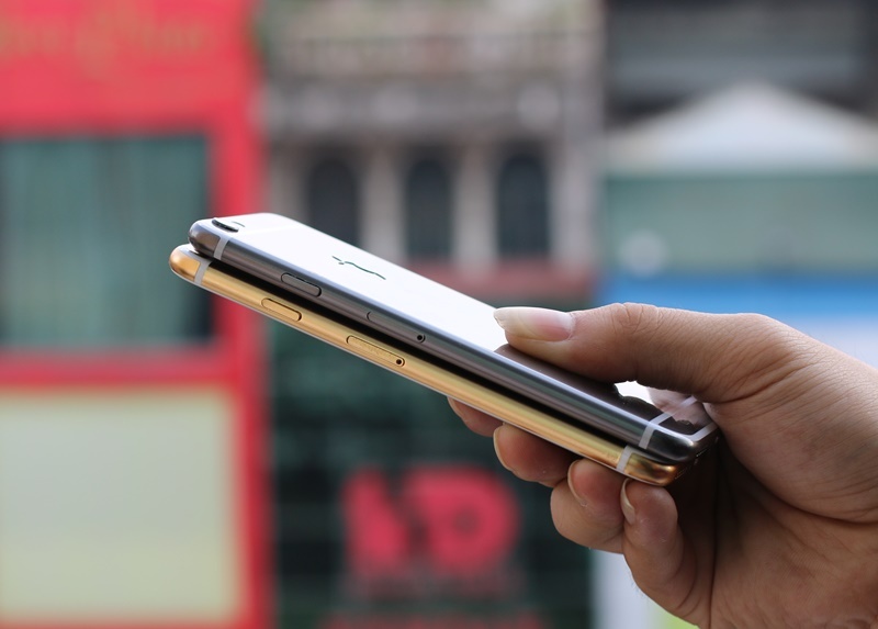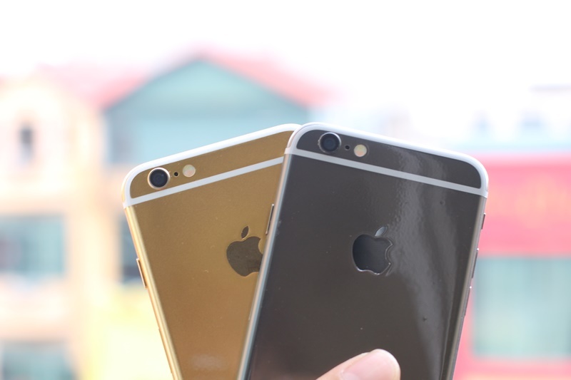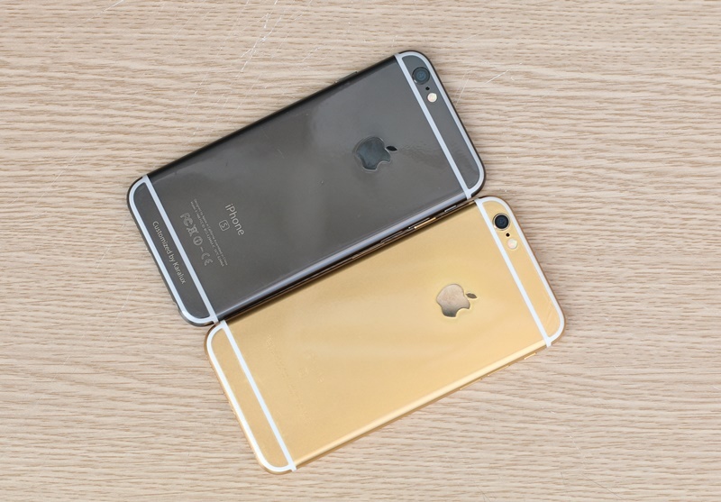 | iPhone 6S màu vàng đen đọ dáng với bản mạ vàng truyền thống. |