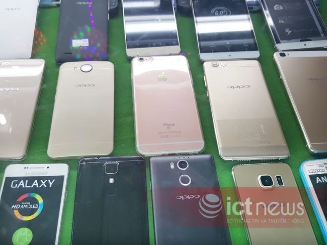 “Mua đi anh, Note 5, iPhone 6S, Oppo, toàn các mẫu mới nhất bây giờ đấy. iPhone 6S màu hồng, Galaxy Note 5 giá 2,5 triệu”, một người phụ nữ tầm 40 tuổi nói liến thoắng rồi quay sang mời chào hai vị khách hàng khác đang ngó chiếc Galaxy Note 5.