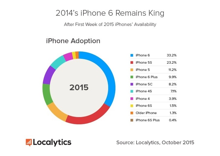 Theo một báo cáo phát hành bởi Localytics, iPhone 6S bán chạy hơn nhiều lần so với mẫu phablet 6S Plus trong tuần đầu tiên lên kệ. Cả 2 thiết bị này hiện chiếm khoảng 1,9% toàn bộ lượng iPhone đang được sử dụng trên toàn thế giới, trong đó, iPhone 6S chiếm 1,5%. Số còn lại 0,4% thuộc về iPhone 6S Plus.