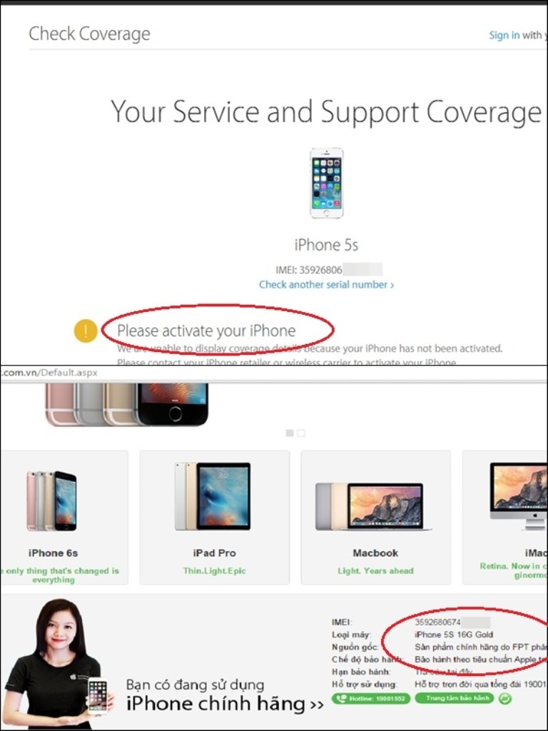 | Check sản phẩm iPhone FPT trôi bảo hành tại website của Apple và FPT Trading. |