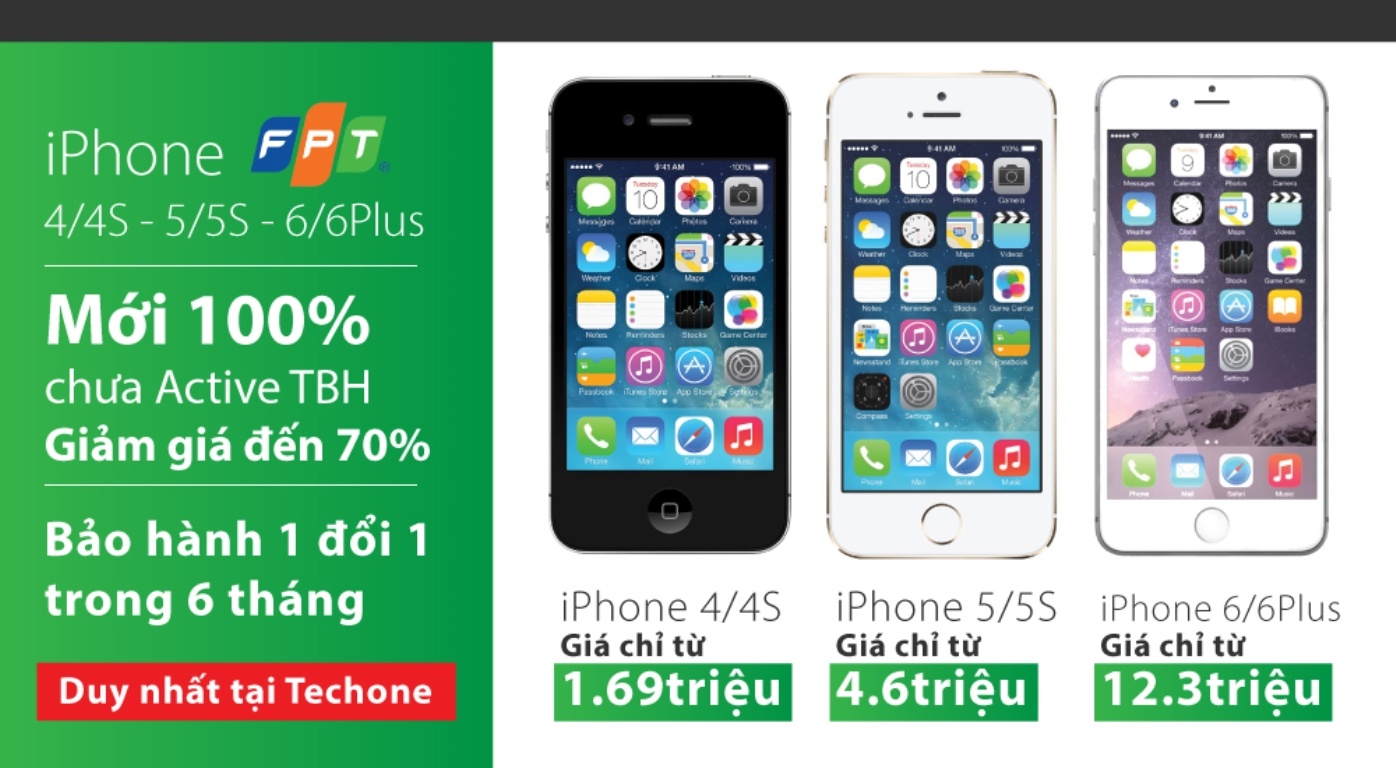 - iPhone 6/6 Plus FPT - chưa kích hoạt - trôi bảo hành: Giá chỉ từ 12,3 triệu đồng.