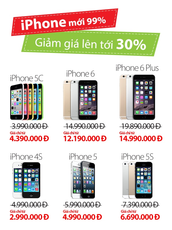 Bên cạnh iPad, iPhone like new cũng đang trong tháng giảm giá khuyến mãi lên tới 30%. Với giá tốt, chất lượng cao, không khó để khách hàng có thể lựa chọn được sản phẩm ưng ý.