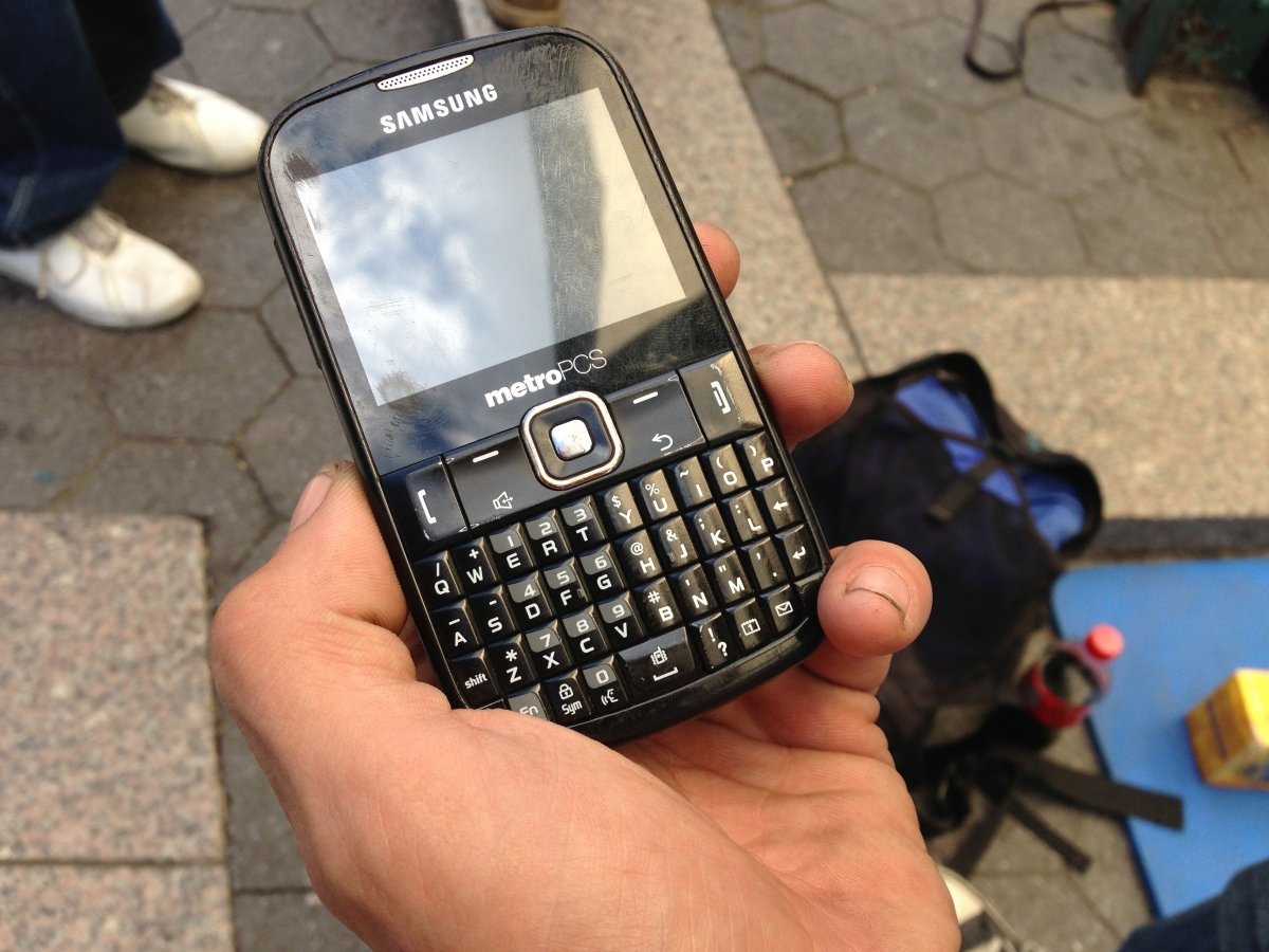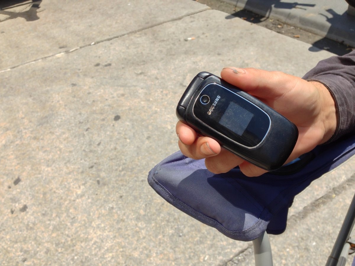 | Ông dùng một chiếc Samsung Tracfone mua từ năm ngoái. |