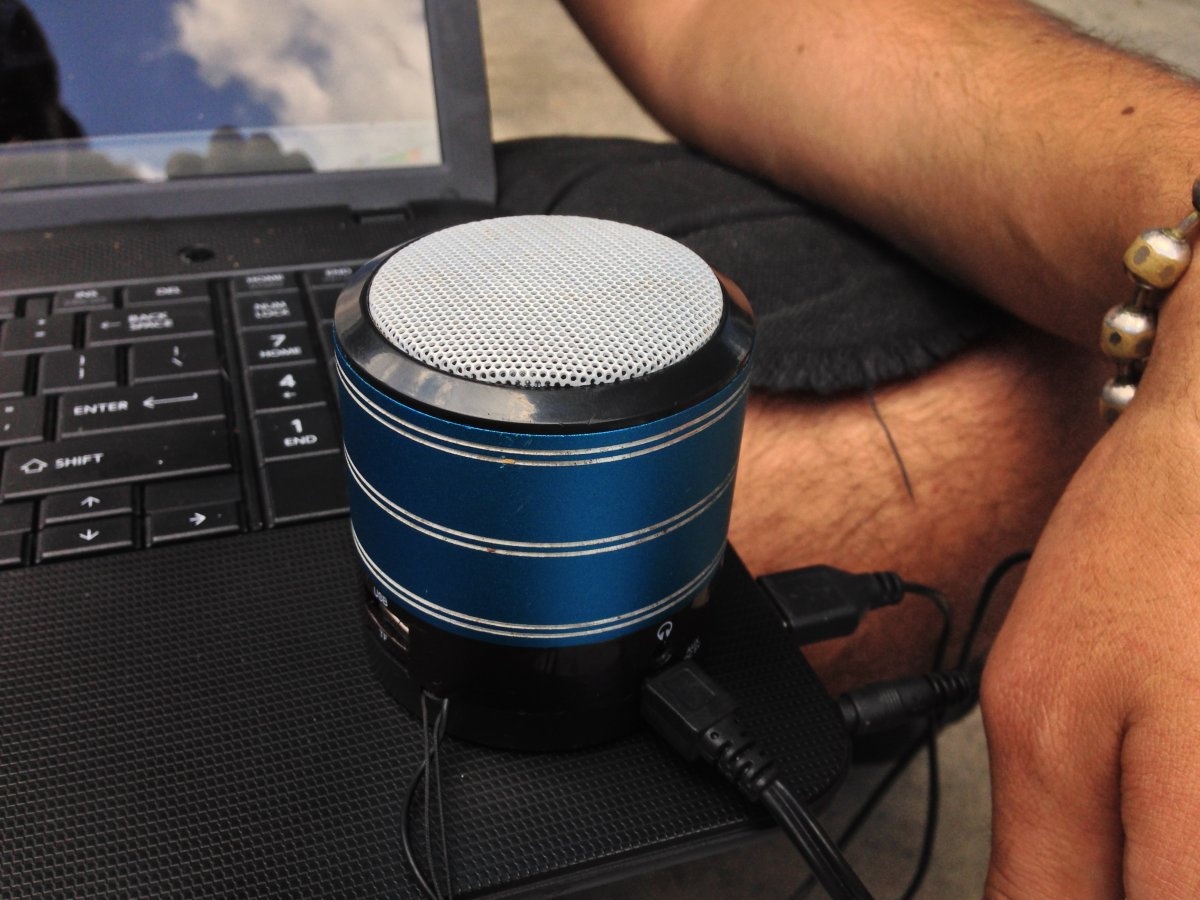 Anh còn dùng loa di động để trải nghiệm âm thanh tốt hơn.