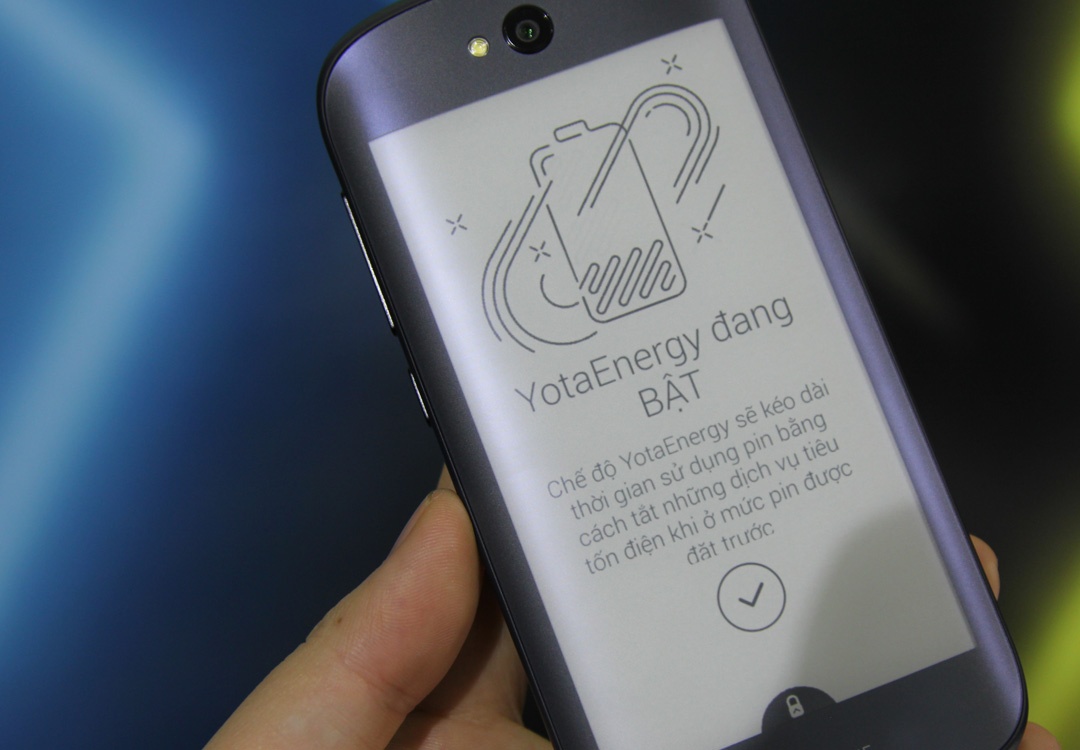 | Chẳng hạn, mặt sau của máy sẽ tự động hiện thông báo bật tính năng YotaEnergy, cho phép tắt bớt độ sáng màn hình, tắt Wi-Fi khi pin của máy sụt xuống mức 15%. |