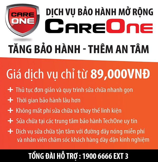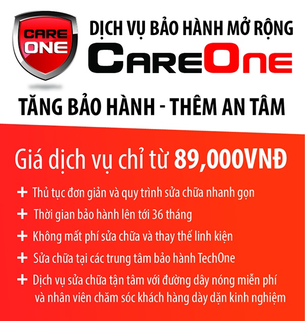 Từ tháng 3/2014, hệ thống siêu thị di động chính hãng TechOne bắt đầu triển khai dịch vụ Bảo hành mở rộng CareOne với rất nhiều ưu đãi cho khách hàng. Chỉ với một chi phí rất nhỏ, khách hàng có thể tăng thời hạn bảo hành của sản phẩm thêm 12 tháng. Trong tháng vàng Gionee, khách sẽ được giảm 10% đối với mỗi gói BHMR CareOne. Thêm 12 tháng bảo hành với chỉ từ 89.000 đồng.