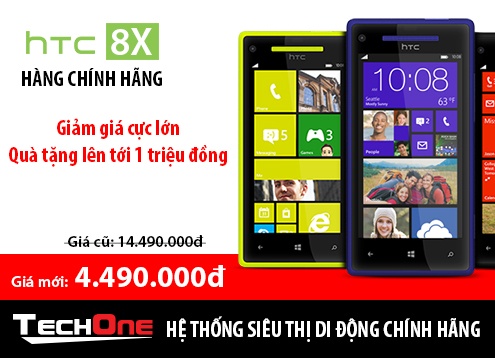 Đứng đầu trong danh sách này phải kể đến HTC 8X, chiếc smartphone Windows Phone 8 cao cấp nhất của hãng điện thoại Đài Loan. Trong thời điểm giáp Tết, HTC 8X đã thực sự gây sốt trên thị trường nhờ mức giá giảm gây sốc tới gần 10 triệu đồng so với giá bán 14 triệu đồng khi mới được ra mắt vào cuối năm 2012. Hiện tại, HTC 8X đang được bán tại TechOne với giá 4,4 triệu đồng và là lựa chọn sáng giá với người dùng muốn sắm điện thoại Windows Phone.