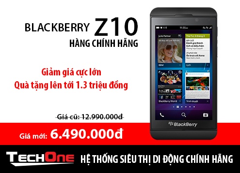 Vào những ngày cận Tết Nguyên Đán, BlackBerry mới bất ngờ thông báo giảm giá một loạt mẫu BlackBerry chạy hệ điều hành OS 10 tại thị trường Việt Nam, trong đó sản phẩm được giảm mạnh nhất là BlackBerry Z10, hiện tại sản phẩm này đang được bán tại hệ thống siêu thị di động TechOne với mức giá 6.490.000 đồng và là sự lựa chọn sáng giá với những fan của Blackberry.
