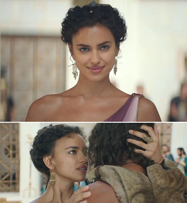 Bạn diễn của cô chính là nam tài tử Dwayne Johnson, thủ vai nam chính Hercule, còn được mệnh danh là "The Rock". Trong đoạn trailer dài hơn 1 phút rưỡi, Irina chỉ xuất hiện một cách chớp nhoáng nhưng để lại dấu ấn đặc biệt. Nụ hôn của người đẹp xứ bạch dương dành cho Dwayne Johnson đem tới những khoảnh khắc lãng mạn hiếm hoi trong đoạn phim đầy bạo lực.