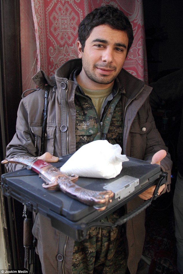 | Chiến binh người Kurd thu giữ gói ma túy lớn từ nhà thủ lĩnh IS. Ảnh: Joakim Medin |