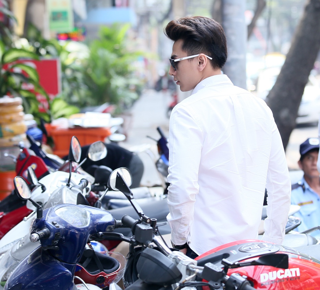 Chiều 28/1, nam ca sĩ "Lỗi định mệnh" thu hút sự chú ý trên phố với gương mặt điển trai, ăn mặc bảnh bao khi ra phố gặp gỡ giới truyền thông.