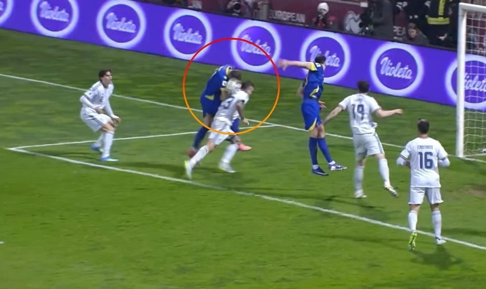 Ngoài ra, Italy còn đòi phạt đền ở một tình huống bóng chạm người Muharemovic trong vòng cấm. Tuy nhiên, pha bóng được xác định là không đủ cơ sở do khoảng cách quá gần và không có dấu hiệu cố ý.