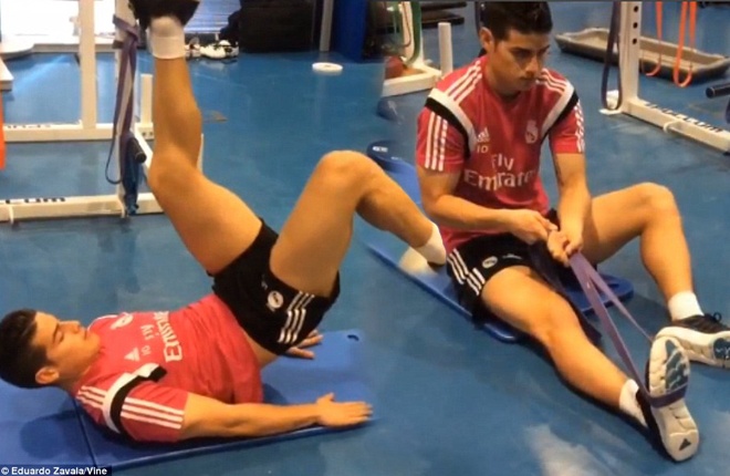 | James Rodriguez đăng những bức ảnh trở lại tập luyện trong phòng gym. Ảnh: Daily Mail. |