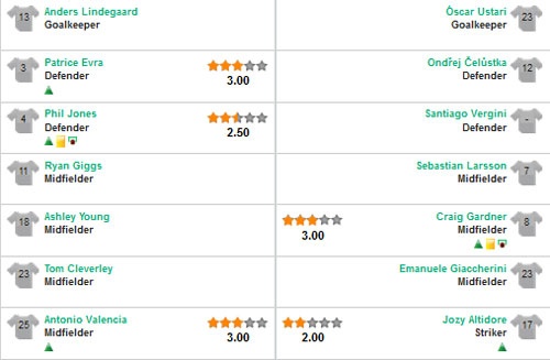 Điểm của cầu thủ trận M.U - Sunderland