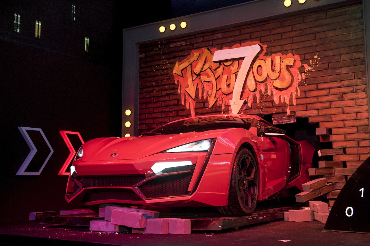 Tại buổi họp báo ở Bắc Kinh, siêu xe Lykan HyperSport bất ngờ góp mặt trên sân khấu sau khi phi qua một bức tường giả. Đây là chiếc xe hơi xuất hiện trong trường đoạn hai nhân vật chính Dominic Toretto và Brian O’Conner (Paul Walker) buộc phải phi qua hai tòa tháp của tổ hợp Etihad Towers tại Abu Dhabi, Các Tiểu vương quốc Ả Rập thống nhất, khi bị Deckard Shaw truy đuổi. |
