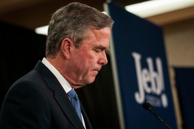 Đổi lại khoản tiền lớn đầu tư cho chiến dịch tranh cử, ông Jeb chỉ thu được 2,8 % số phiếu ủng hộ ở bang Iowa, 11% ở New Hampshire, đồng thời ông tuyên bố rút khỏi cuộc đua sau thất bại trong bầu cử sơ bộ ở South Carolina ngày 20/2 khi chỉ giành vẻn vẹn 8% số phiếu bầu.