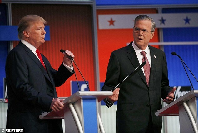 | Donald Trump và Jeb Bush trong buổi tranh luận giữa các ứng viên đảng Cộng hòa. Ảnh: Reuters |