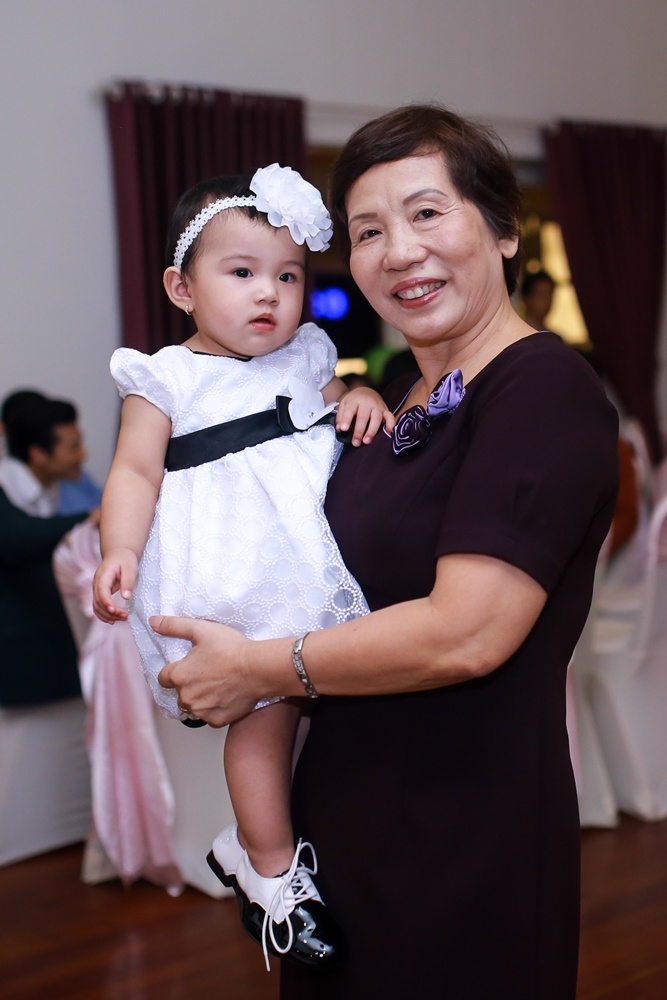 Ông bà nội đến mừng sinh nhật cháu gái. Hoa hậu cho biết, từ ngày có bé Na, gia đình ngập tràn trong tiếng cười và hạnh phúc.