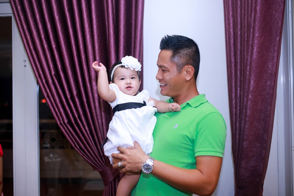 Bé Na 1 tuổi đang chập chững những bước đi đầu tiên. Cô bé có nhiều nét giống ba hơn mẹ. Doanh nhân Nguyễn Đức Hải rất cưng chiều con gái.