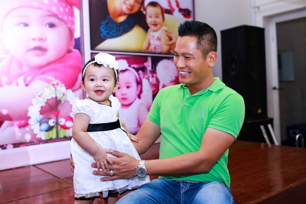 | Vừa qua, cặp vợ chồng nổi tiếng tổ chức mừng sinh nhật hoành tráng cho con gái cưng. Bé Na được mẹ chưng diện váy trắng xinh xắn. Cô bé kháu khỉnh thừa hưởng nét đẹp từ bố lẫn mẹ. |