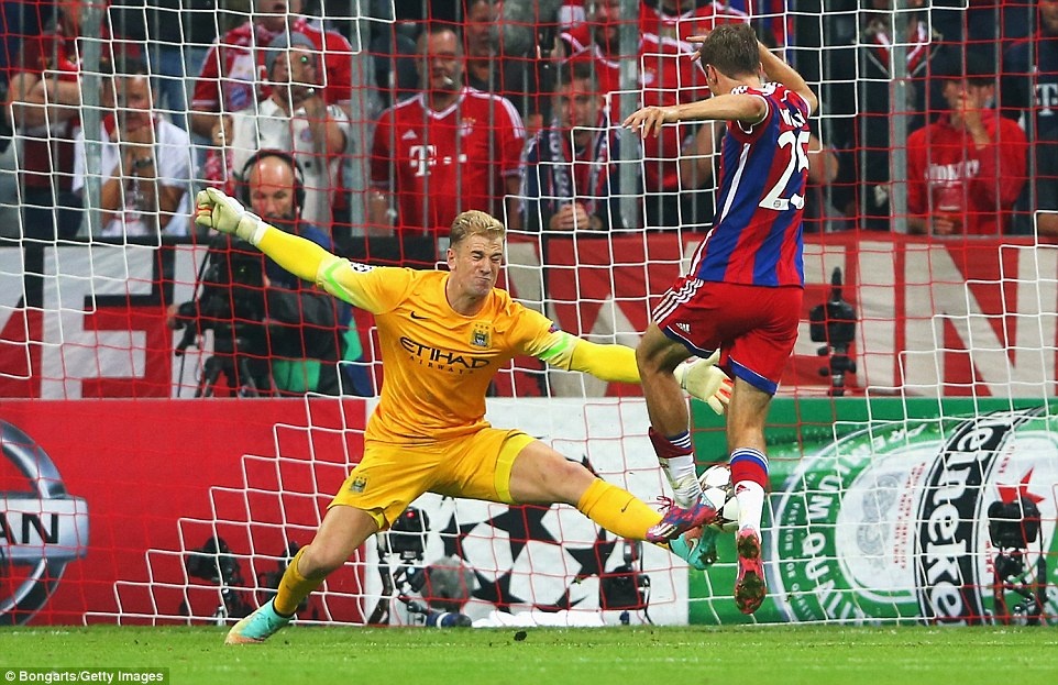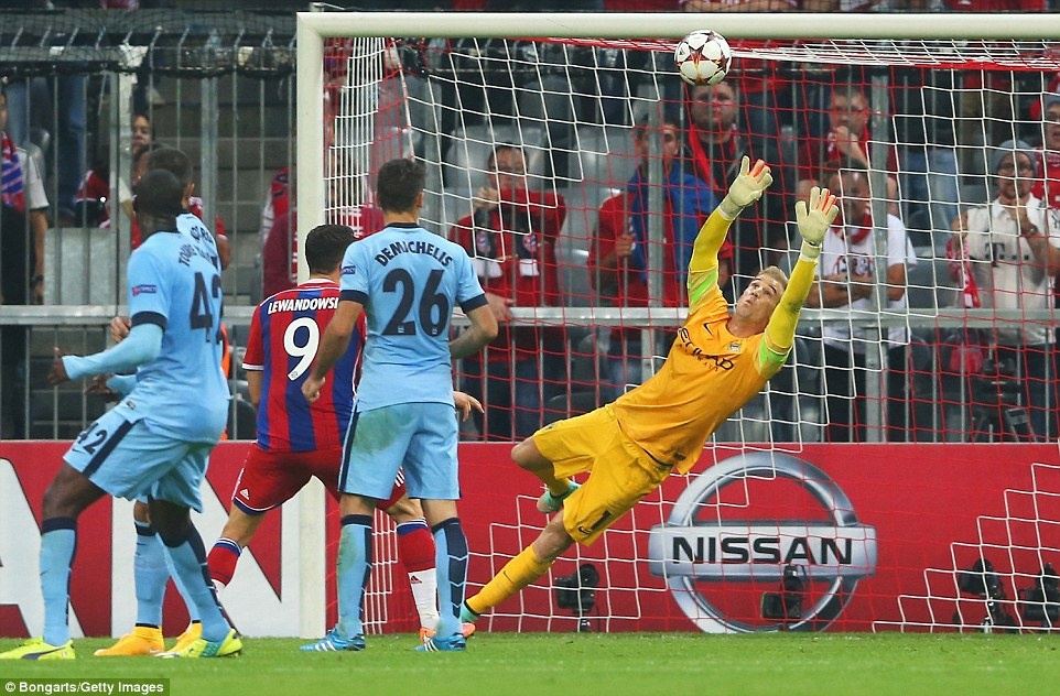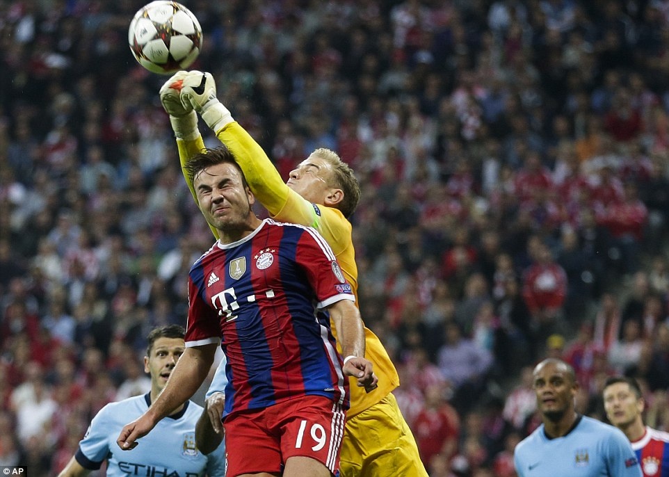 | Các tiền đạo của Bayern trổ hết tài nghệ cũng không khuất phục được tài năng của Joe Hart. |