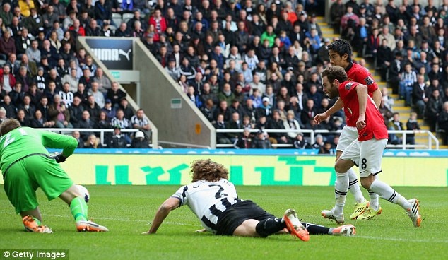 | Tiền vệ người Tây Ban Nha đưa bóng vào góc cao khung thành Newcastle. |