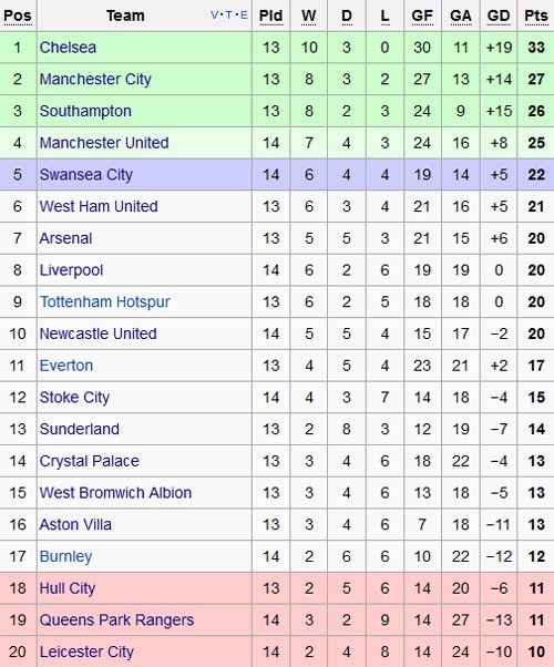 Với việc giữ thành công tỷ số 2-1 trước Stoke, M.U tiếp tục có mặt trong top 4 trên bảng xếp hạng với 25 điểm sau 14 vòng đấu.