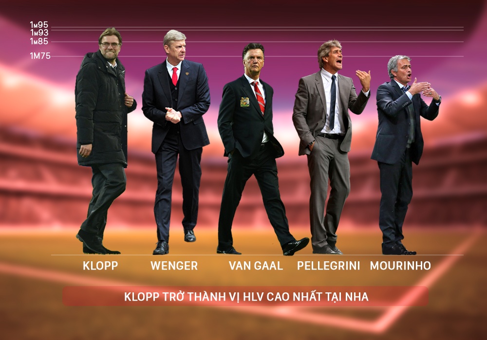 Một thông tin thú vị là khi Jurgen Klopp dẫn dắt Liverpool, ông sẽ là vị huấn luyện viên cao nhất tại Ngoại hạng Anh khi hơn 2 cm so với người đứng thứ 2 là Arsene Wenger.