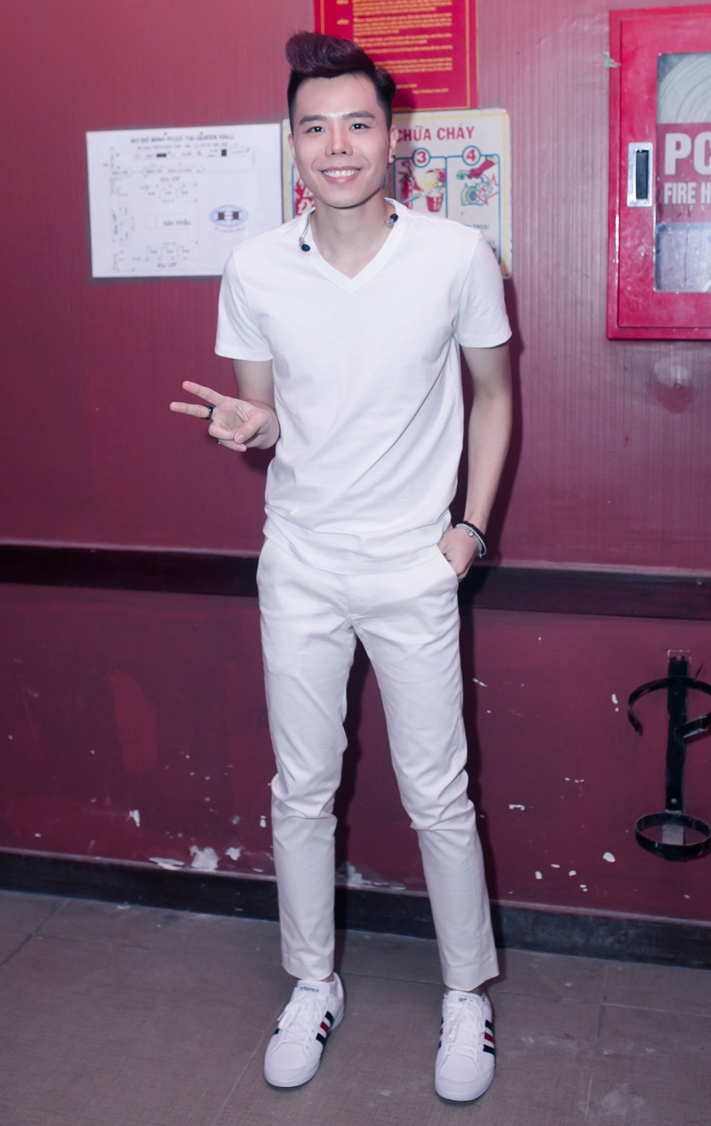 | Trịnh Thăng Bình tự tin trước giờ diễn. Trong liveshow, nam ca sĩ trẻ gây ấn tượng tốt khi liên tục biến hóa với nhiều dòng nhạc khác nhau. |