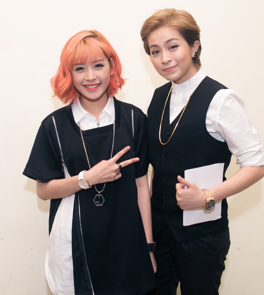 | Chi Pu và Gil Lê diện trang phục tông xuyệt tông trắng đen. |