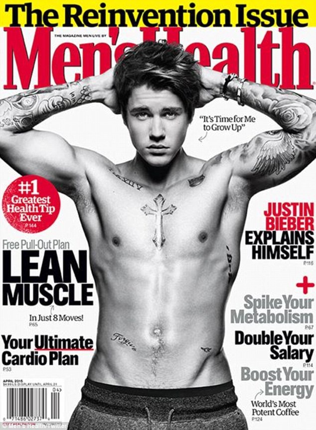 | Justin Bieber trên trang bìa tạp chí dành cho đàn ông Men's Health. |