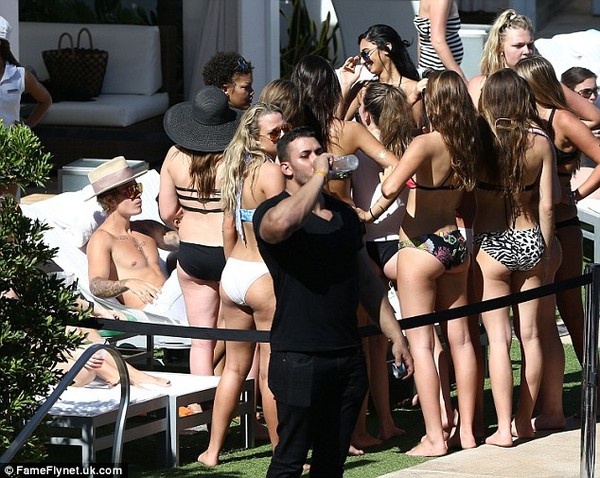 | Justin vui vẻ trong bữa tiệc sinh nhật tại Florida bên những cô nàng nóng bỏng. |