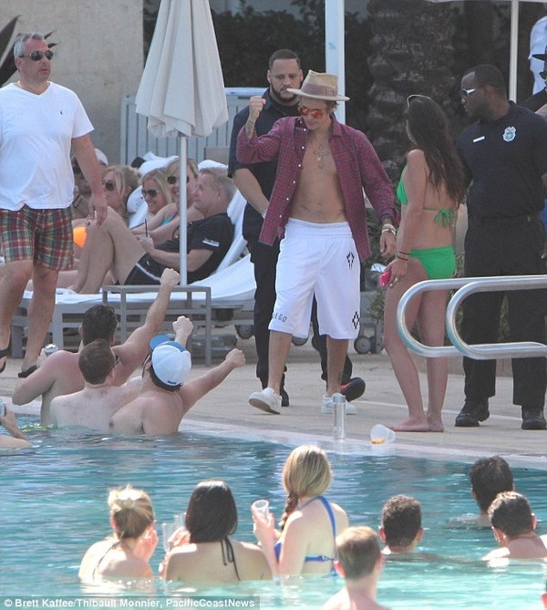 Để kỷ niệm sinh nhật lần thứ 21, Justin Bieber tổ chức buổi tiệc hoành tráng tại một khách sạn ở Florida. Trong những hình ảnh do paparazzi ghi lại, nam ca sĩ cởi trần và vui chơi bên bể bơi cùng các cô gái mặc bikini nóng bỏng.