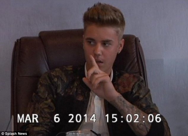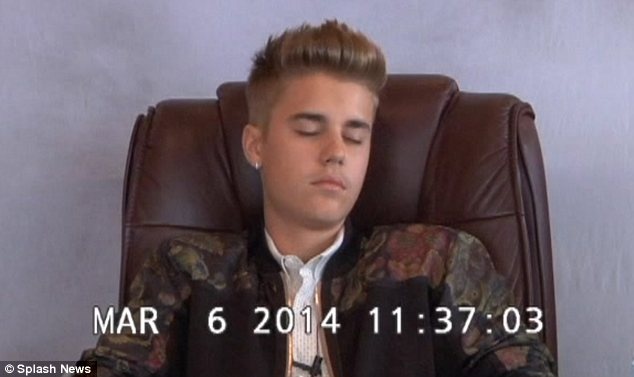 | Thay vì một thái độ cởi mở và hợp tác, Justin mang khuôn mặt bất cần đời, đầy khiêu khích và cách trả lời thô lỗ, kiêu ngạo khi đối mặt với luật sư của paparazzi Jeffrey. Từ những hình ảnh được cắt ra từ đoạn clip thu lại từ buổi lấy lời khai, có thể thấy không khí rất căng thẳng. Hoàng tử nhạc pop rất cục cằn, thô lỗ và đôi khi còn giả vờ ngủ để lờ khi những câu hỏi từ phía luật sư. |