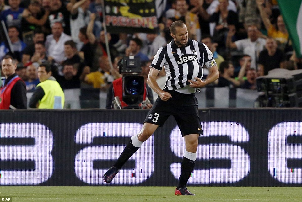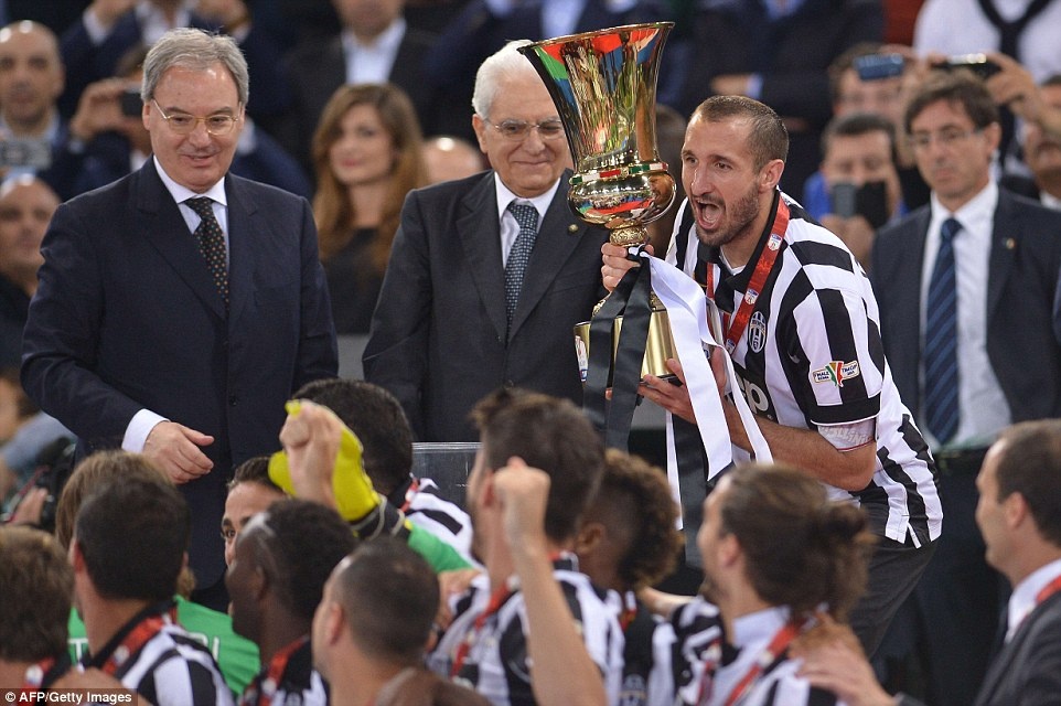 | Hậu vệ Giorgio Chiellini góp công lớn giúp "Lão phu nhân" có mùa giải thành công. Anh là cầu thủ ghi bàn cho Juventus ở trận chung kết cúp quốc gia Italy. |
