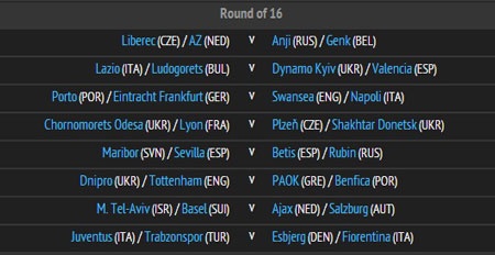 Lịch thi đấu của vòng 1/8 cũng đã cùng lúc được công bố. Không khó để dự đoán về những cặp đấu hấp dẫn tại vòng sau, như cuộc nội chiến Serie A giữa Juventus và Fiorentina, hay cuộc chạm trán thú vị Napoli với Porto.
