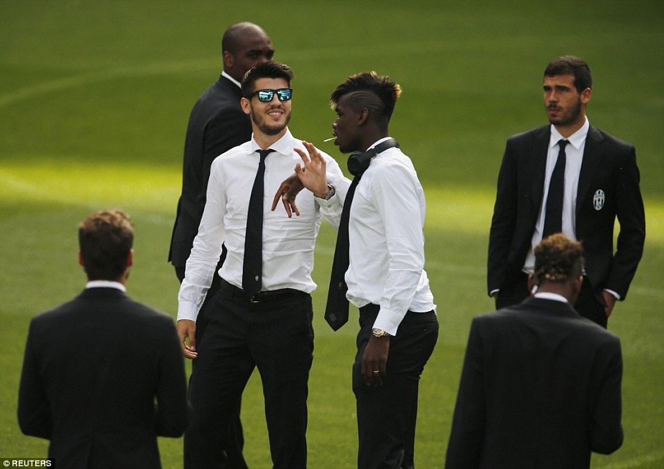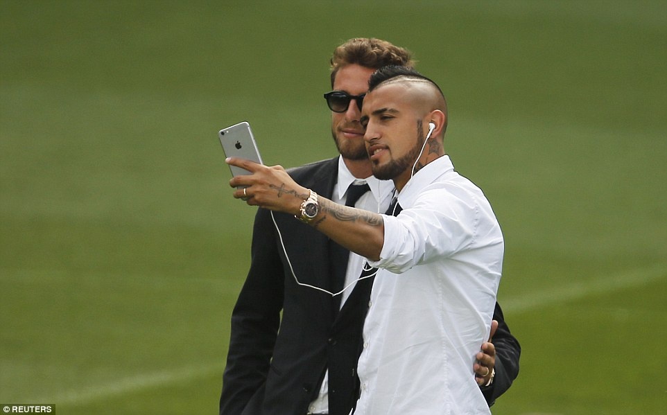 | Tiền vệ Vidal chụp ảnh selfie với Claudio Marchisio trên sân Bernabeu. Ngôi sao người Chile là nhân tố then chốt của Juventus trong thời gian Pogba dưỡng thương. |