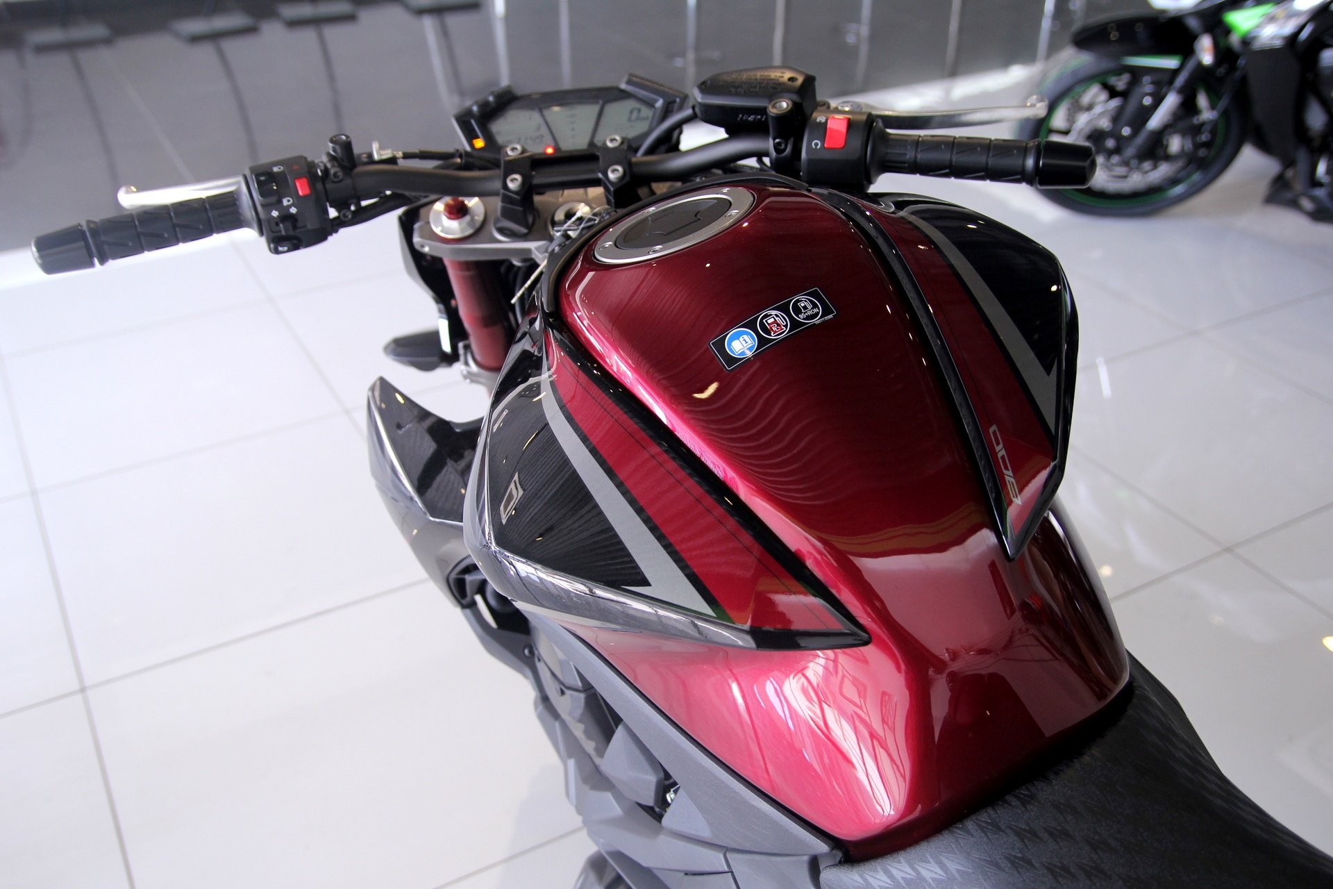 | Sau Z1000 màu đỏ-đen dành cho phiên bản 2016, Kawasaki tiếp tục áp dụng màu sơn này trên mẫu naked bike hạng trung giá mềm Z800. Chiếc xe đầu tiên vừa được nhập khẩu chính hãng về TP HCM. |