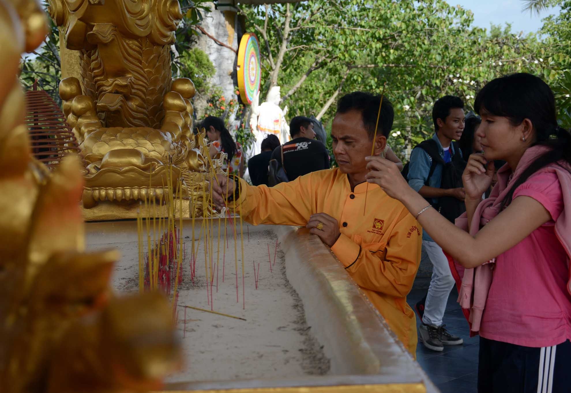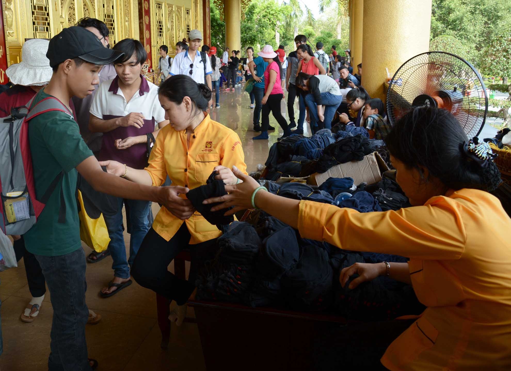 | Liên tục phát tất cho du khách vào chính điện tham quan. |